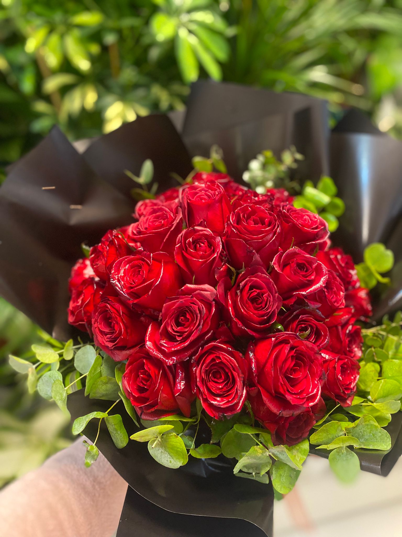 25'li Siyah Kağıtta Kırmızı Gül
